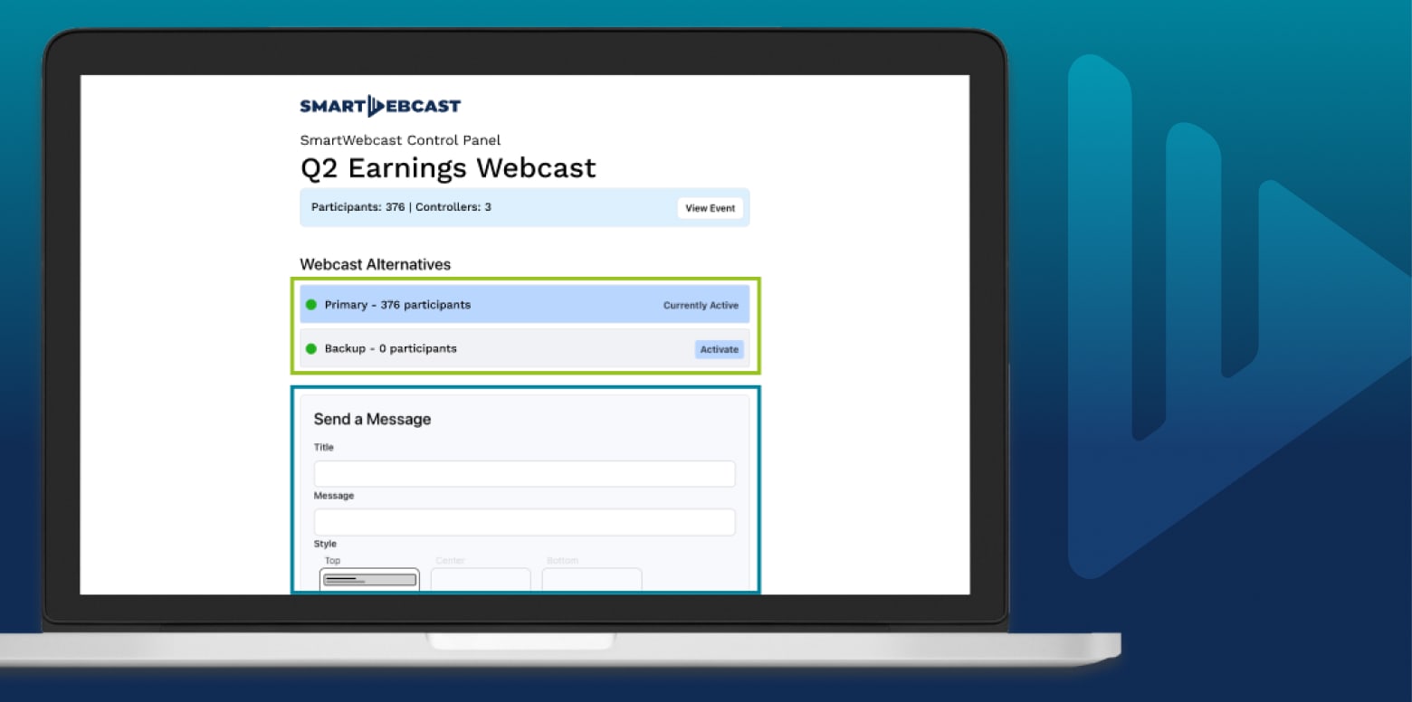 By adding SmartWebcast to your earnings webcast, should your webcast go down, you can now switch from your primary webcast to the backup in real-time without participant interruption.